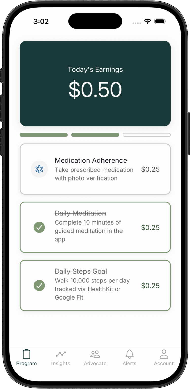 Our unique, inclusive approach incorporates daily reminders and monetary rewards, coaching, gamification, and remote advocate involvement.
